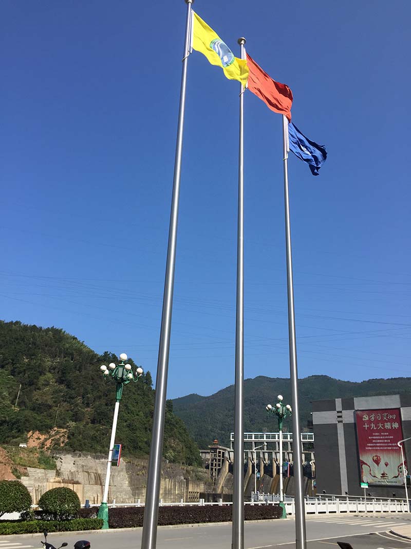 目前安装三根旗杆是公司,酒店,工厂,学校的主流选择,一般中间悬挂国旗并高出左右两边的旗帜0.5-1.2米,左右两边一般悬挂集团旗帜,校旗或班旗等,我司的三根电动升旗可以同升同降或分开升降并同步不同的音乐。